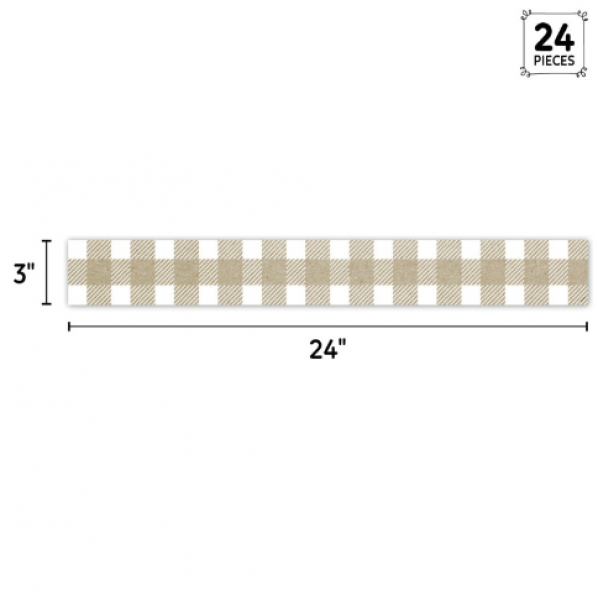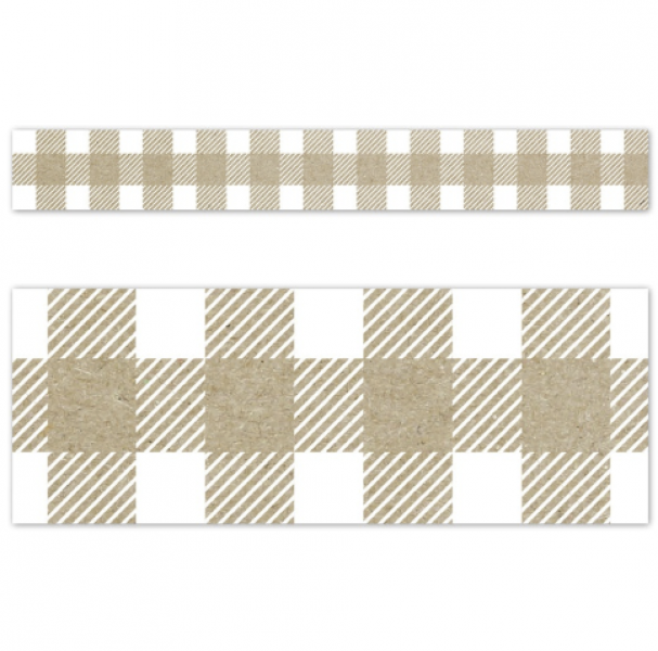 Smart and simple, this Kraft Buffalo Check EZ Border features a white check pattern on a kraft-style background. Use it alone to create a classic look or layer it with another border for a unique look. Perfect for use on bulletin boards in a wide variety of classroom, office, and school settings. These EZ borders come in smaller strips, which are easier to manage and store.
