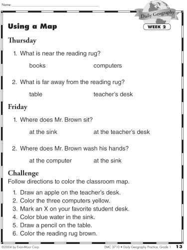 In Daily Geography Practice, Grade 1, 36 map lessons introduce basic geography skills and over 60 geography terms with a fun, hands-on approach to geography instruction! Lessons are designed to support any geography and social studies curriculum.