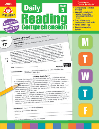 Daily Reading Comprehension presents students with direct instruction and practice of the comprehension strategies and skills they need to become strong and successful readers. 150 original fiction and nonfiction passages with comprehension items help you engage students in reading, thinking about, and responding to a variety of texts. Reproducible pages, included in the teacher’s edition, provide visual tools for students to help them apply reading skills to the passages they read. And because activities are presented in an exam format, students practice important test-taking skills while they strengthen comprehension.