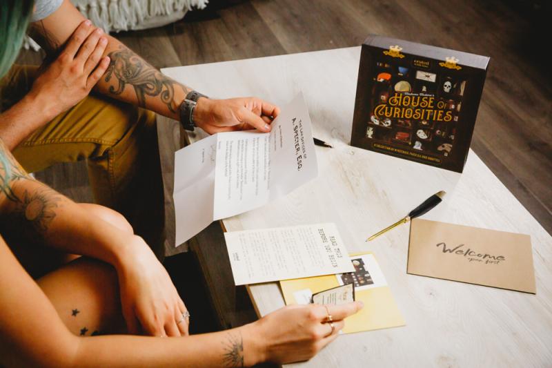 Solve puzzles and uncover treasures in this thrilling escape-room board game—perfect for family fun or a date night for adults who love mystery! You've inherited a large estate from Madame Medora. To claim your inheritance, you must solve a series of puzzles and riddles while spending one night in her House of Curiosities. Takes about 90 minutes to solve and requires teamwork and problem solving! Designed by husband-and-wife duo, this game is thoughtfully crafted to inspire deeper connections and meaningful conversations for couples and families. For 1-5 players.