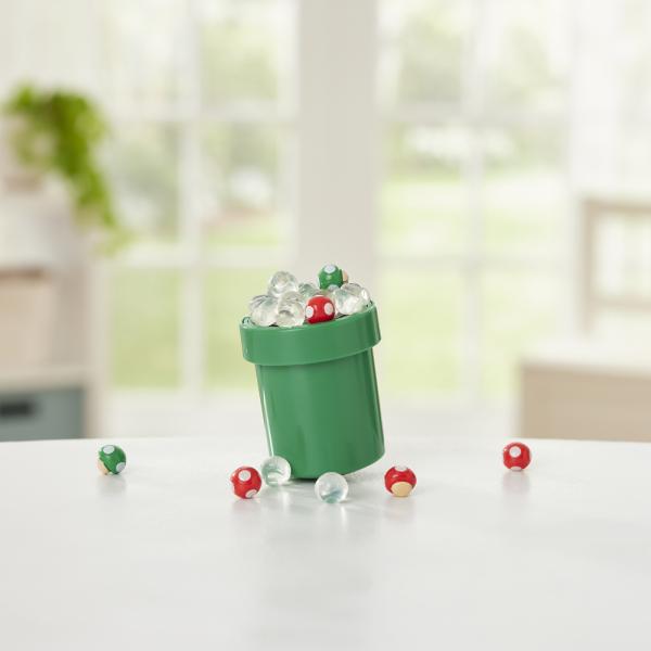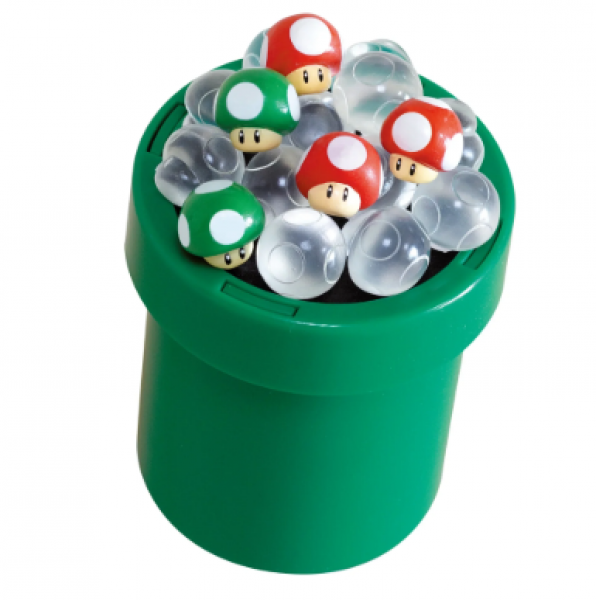 Wahoo! Put your balancing skills to the test with the Super Mario Mushroom Mania Balancing Game! Easy to learn but challenging to master, this compact game is perfect for on-the-go fun. Inspired by the world of Super Mario, players take turns carefully stacking tiny Mario mushrooms on top of the iconic green, wobbly drainpipe. Stay steady and keep your cool—if you can place the most mushrooms without tipping the platform, you win! But watch out—one wrong move and the mushrooms will go flying! With exciting and unpredictable gameplay, this fun balancing challenge provides hours of fun for the whole family. Perfect for family nights, friendly competitions, or solo practice. For 1-3 players.